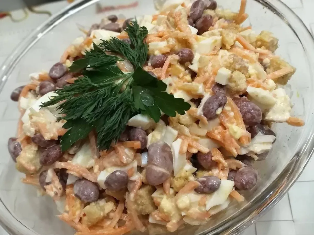 Салат с фасолью, морковью по-корейски, яйцами и майонезом!