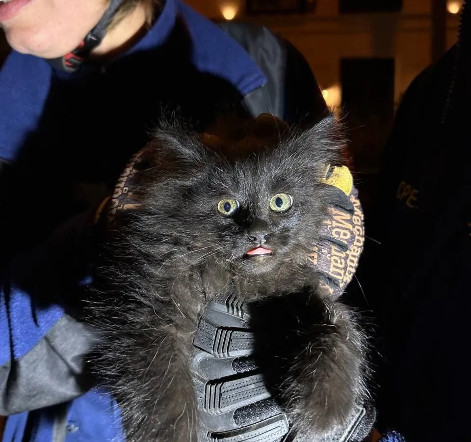 Спасённый котёнок оказался очаровательным пушистым комочком. Прохожие, которые организовали спасение, решили забрать его себе. Поздравляем котёнка с обретением дома, а его новых хозяев — с таким замечательным питомцем!