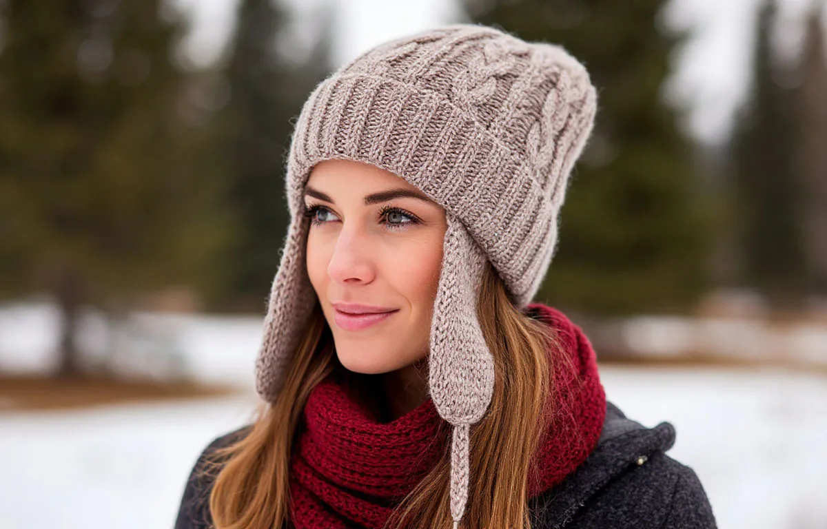 Главный плюс — защита. Ушанка закрывает не только голову, но и уши, щёки, подбородок. Для холодной зимы это ощутимая разница. По сравнению с бини она даёт более чёткий силуэт и делает образ собранным, а не случайным.