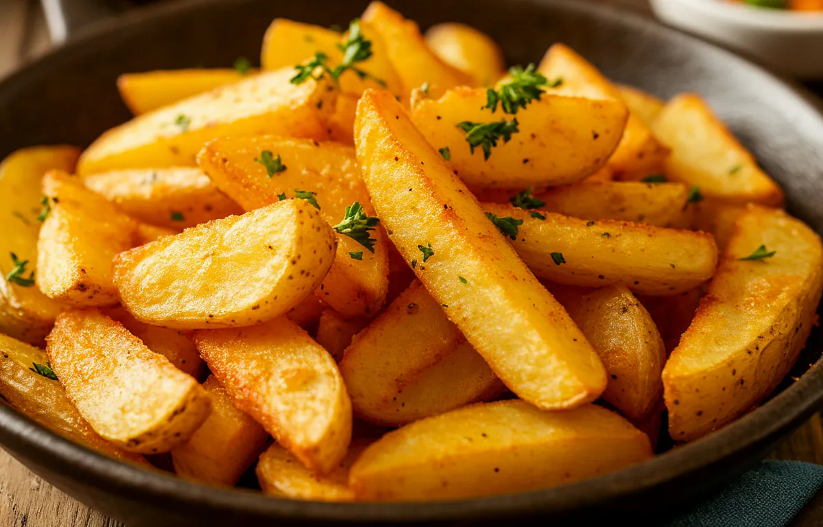 Дело в химической реакции. Когда вы отвариваете картофель в воде с добавлением щепотки соды, щелочная среда действует на поверхность клубней. Она частично разрушает пектин — природный «клей» в клетках — и выводит крахмал наружу. Этот крахмал, высохнув, образует тончайшую оболочку. При последующей жарке или запекании она и превращается в ту самую золотистую, хрустящую и почти непробиваемую корочку, которая не даст маслу просочиться внутрь. Картошка остаётся воздушной, а не маслянистой.