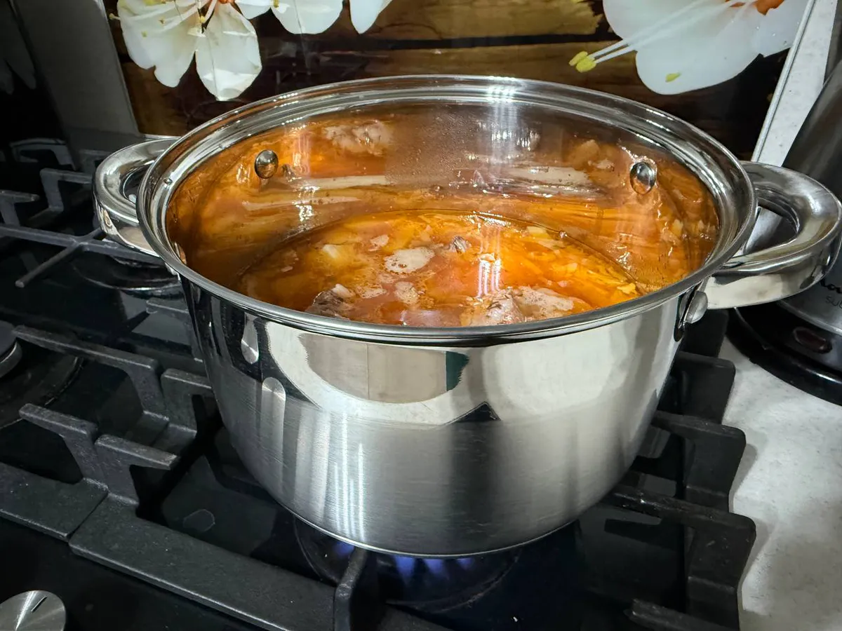 Такой борщ не терпит быстрого огня. После соединения всех ингредиентов с бульоном суп нужно томить на самом маленьком огне от 30 минут до часа. За это время вкусы окончательно соединятся в единую, сложную гармонию. Аромат станет глубже, а цвет — ещё насыщеннее.
